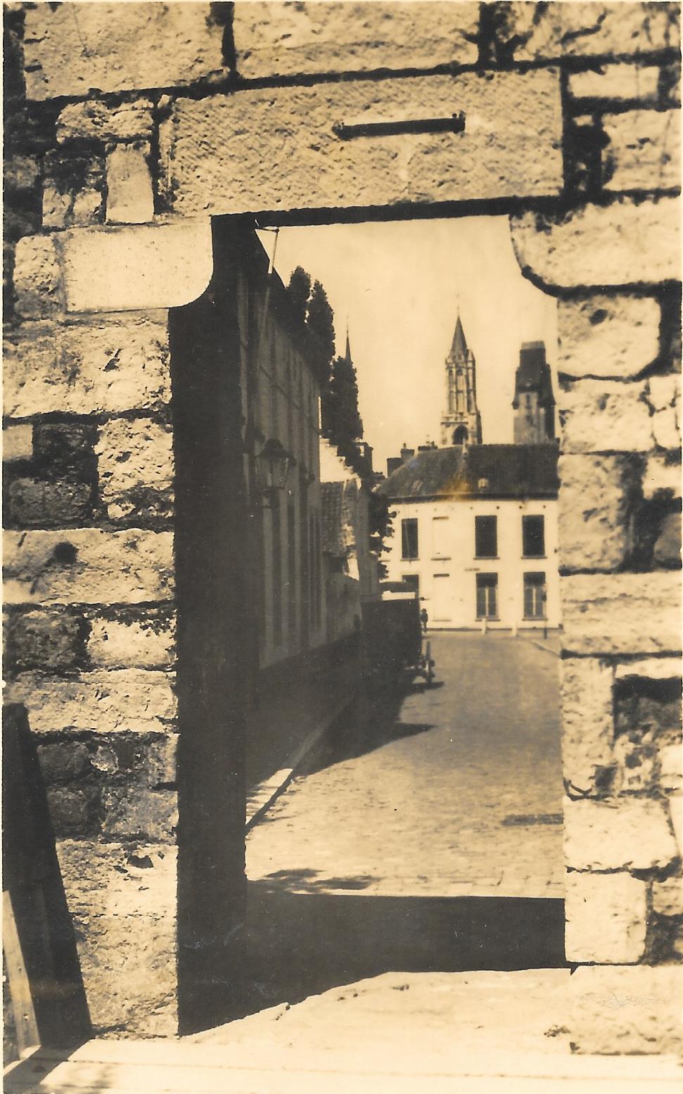 Dit is het Nieuwenhofpoortje te Maastricht, vanuit het Stadspark. Op de voorgrond het brugdek over de Jeker. De straat achter de poort is dan de Zwingelput en het pand aan het eind is het hoekpand Grote Looiersstraat (rechts) en Looiersgracht (beetje links en dan rechtdoor). In de achtergrond links de toren van de gotische St.-Janskerk (Henric van Veldekeplein) en rechts de toren op het Gouvernementsgebouw aan de Bouillonstraat (nu rechtenfaculteit UM). Dat is in gebruik genomen in 1932, dus de foto dateert van dat jaar of later. Bijgaand een niet al te beste foto, maar misschien voldoende als bewijsvoering? https://www.google.nl/search?q=Nieuwenh ... 6SaStQM%3A