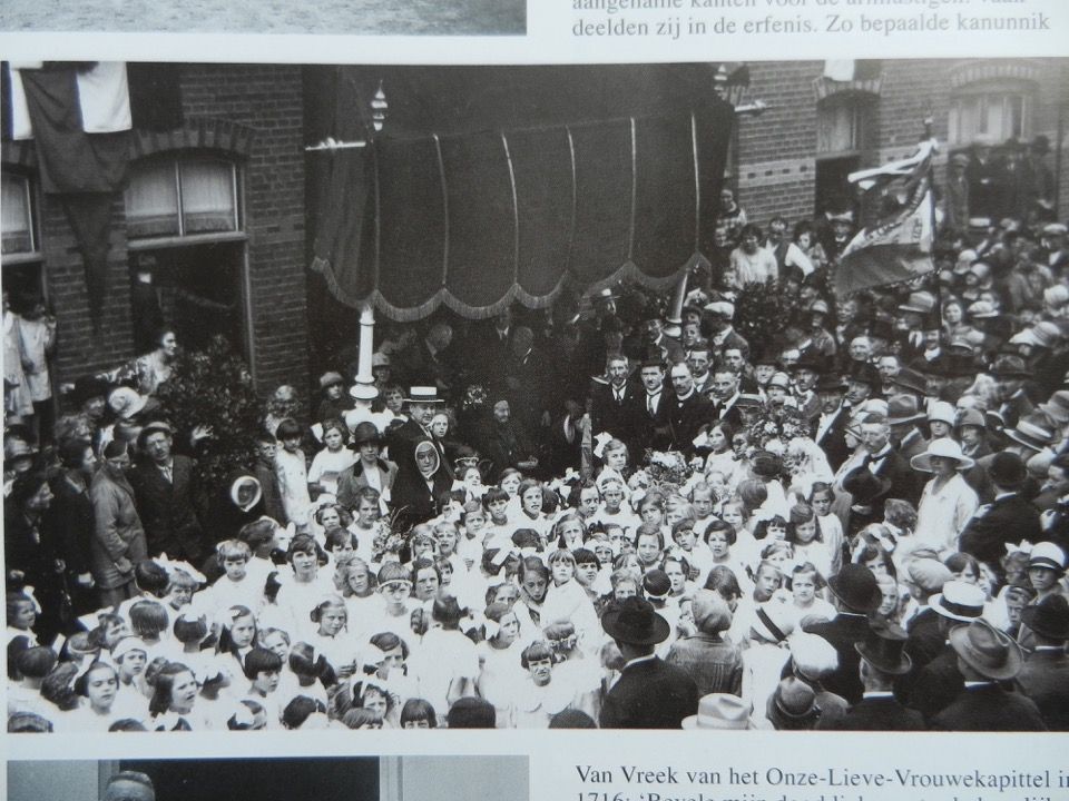 De foto is genomen in Maastricht en heeft niets te maken met de mijnstreek. Deze oude dame is ‘vrouw Magnée’, die in 1927 honderd jaar werd. Op Delpher is daarover een hele reeks berichten te vinden. Het was een enorme happening die een heel weekend duurde en waarbij iedereen, maar dan ook werkelijk ‘iedereen’ in de stad zich geweldig uitsloofde, zelfs het gemeentebestuur. De koninklijke mannenkoor De Mastreechter Staar en de Koninklijke Harmonie van Maastricht gaven acte de presence, maar tevens nog tenminste zeven andere muziekgezelschappen, waaronder de fanfares Sint Joezep en Kunst na Arbeid, en de harmonie Kunst door Oefening. Verder deden mee de gymnastiekvereniging Kracht door Volharding, het Sint Lambertus Comité, vierhonderd (400) bruidjes van de lagere scholen en tenminste één schutterij, die kamerschoten loste, en nog vele anderen. Geweldig leuk om te zien dat met deze viering in de arbeiderswijk Blauw Dorp niet alleen het verenigingsleven van de arbeiders- en lagere middenstand vertegenwoordigd was, maar ook dat van de meer kapitaalkrachtige middenstand. De eerste twee verenigingen waren toentertijd het muzikale boegbeeld van de stad. http://www.delpher.nl/nl/kranten/view?q ... 21%3Aa0086