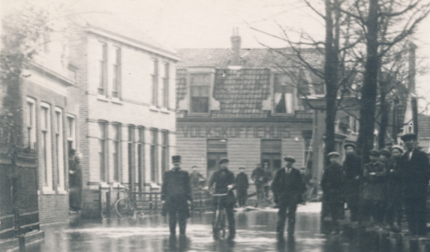 5751 overstroming met Volkskoffiehuis op achtergrond