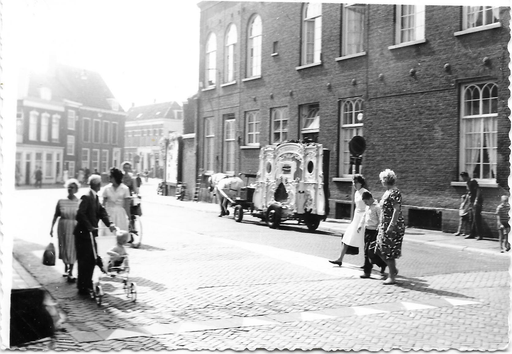 Merkwaardig dat dit beeld zo moeilijk te vinden is. Het verkeersteken parkeerverbod (wachtverbod) rechts van het draaiorgel werd in 1953 ingevoerd ter vervanging van het het bord met de doorgehaalde P; zie http://www.carellurvink.nl/webshop/p/25 ... 225-dia100. De foto zal dus niet ouder zijn dan van 1953.