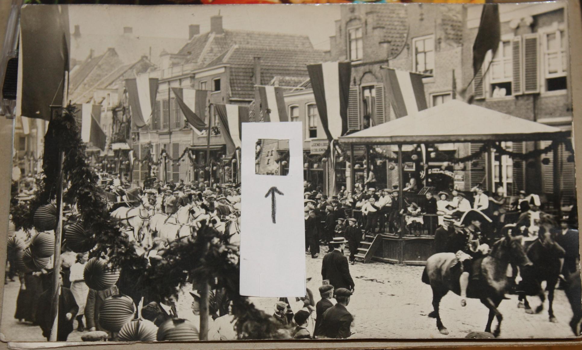 Mijn vraag: Waar is dit? Op een van de banieren staat iets wat op het wapen van Purmerend lijkt. Maar is het een foto van Purmerend omstreeks de eeuwwisseling? Naast het banier ze je nog een reclamebord van Van Gend en Loos. H.Colignon. Wie kan mij duidelijkheid geven?