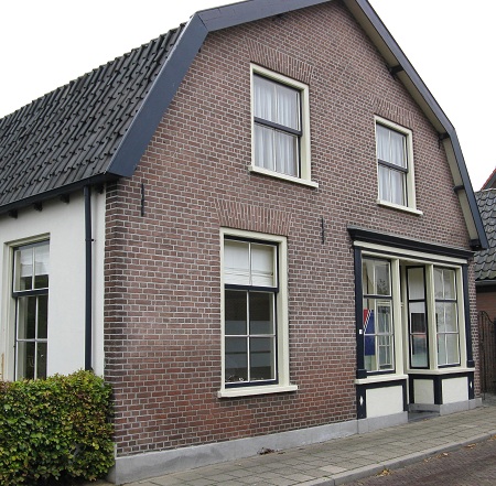 Dit winkeltje vinden we aan de Donkerstraat 1 in Amerongen. Alleen de mooie versiering langs de windveren is helaas verdwenen. Streetview is hier nog niet doorgedrongen.
