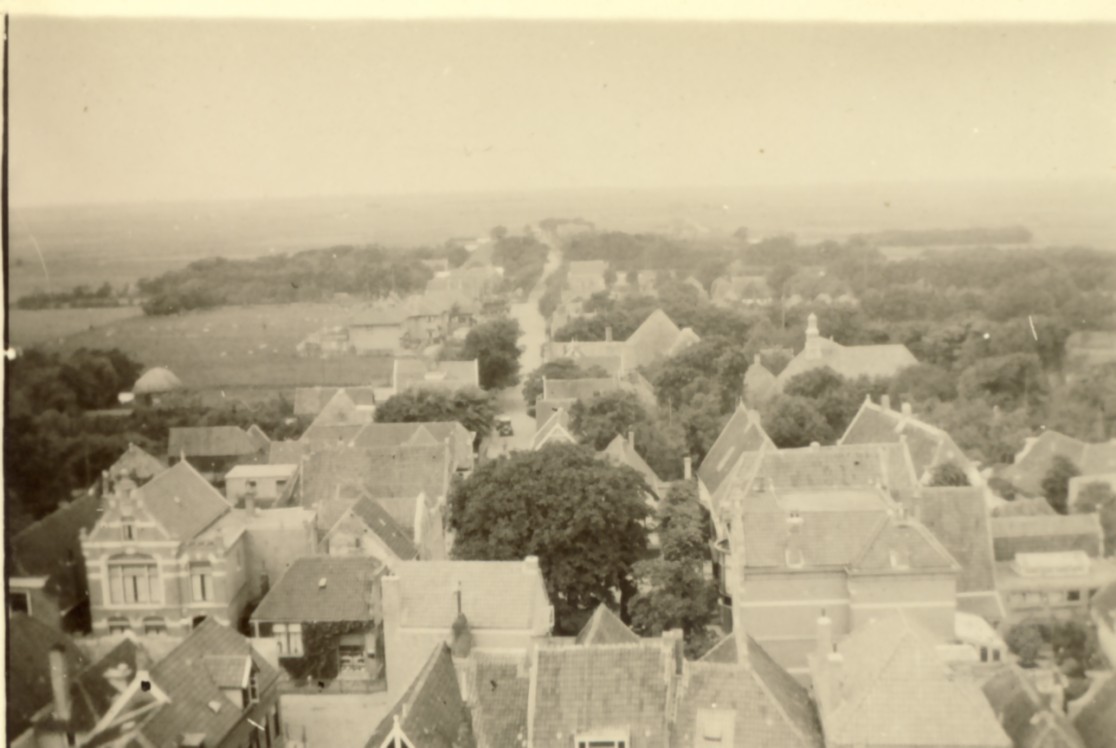 Foto is gemaakt vanaf de kerktoren in de Binnenburg. De trapgevel staat er nu nog, Bakker Timmer is hier gehuisvesd.