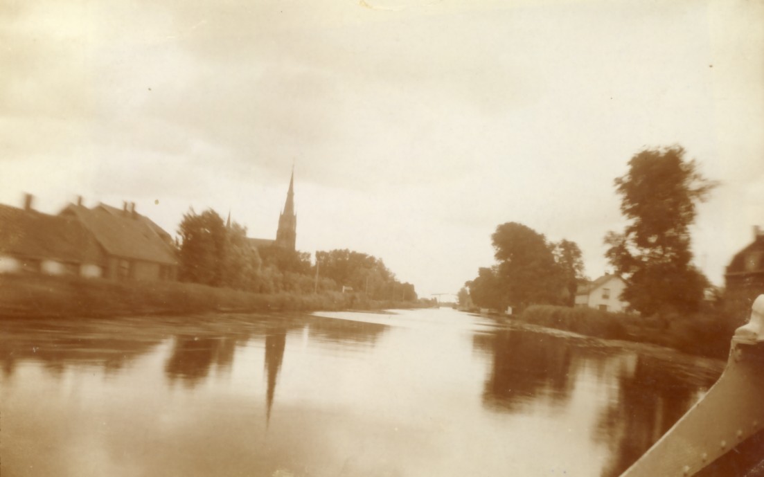 Nee, Jan en Arnold, een detailscan is niet nodig. We zien hier de toren van de kerk O.L.V. Hemelvaart aan de Dammerweg te Nederhorst den Berg. Het water is de thans gedempte Reevaart of Nieuwe Vecht. De foto is in zuidelijke richting genomen. In de verte zien we heel vaag de dubbele ophaalbrug. Zie ook http://www.postcardsfrom.nl/ht-docs/pos ... t=&x=7&y=5.