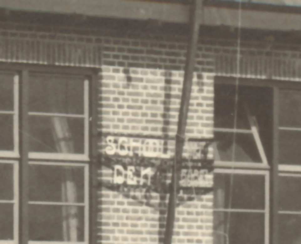 beste H.W. Mol, helemaal goed. Aan de school is flink gesleuteld en vandaar dat daar het bewijs nauwelijks meer is te vinden. Maar aan het huis rechts is duidelijk te zien dat je midden in de roos zit. Een prachtige vondst. Daar zijn we je bijzonder dankbaar voor. Weer heel graag tot een volgend contact.
