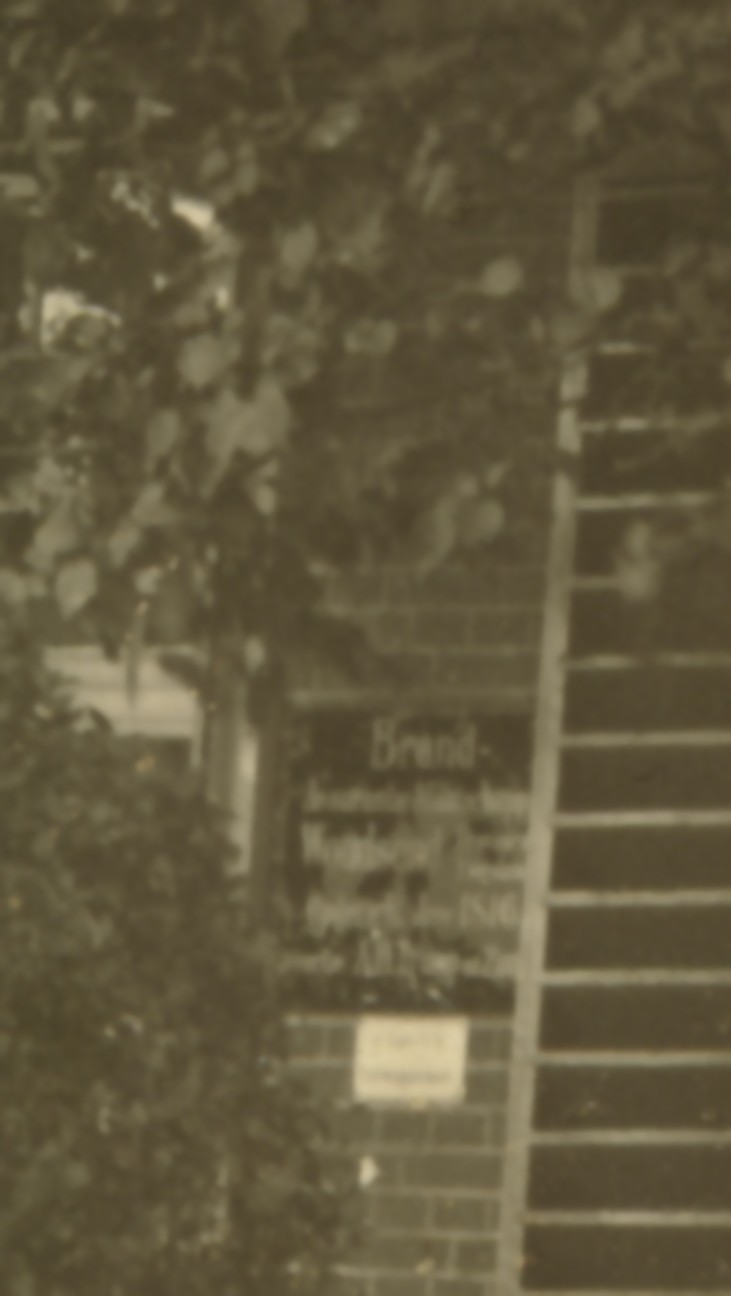 rechts naast de deur 2 bordjes, op de bovenste staat onder meer BRAND, Woudsche (was dit een verzekeringsmaatschappij?) en 1816 (misschien in dat jaar opgericht)