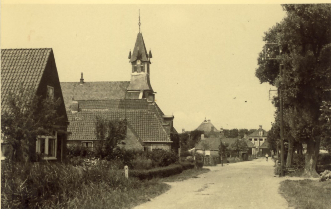 Dit is de Tilledyk in Minnertsga, met de gereformeerde kerk.