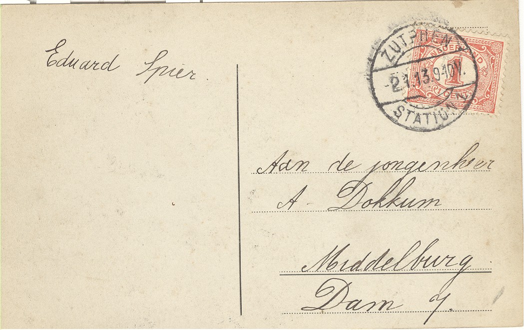 De afzender Eduard Spier is geboren in Zutphen 17-01-1902. Hij is als student in 1919 aan de HH (wat is dat, Arnold?) naar Rotterdam vertrokken, maar niet met de Edam.