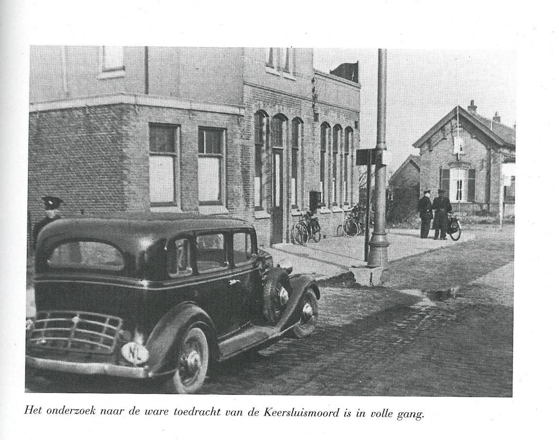 Links de Koningsweg met op de achtergrond links café De Keersluis en de brugwachterwoningen op de hoek met de Nieuwe Vlissingsche weg. Rechts, nog net zichtbaar, het brugwachtershuisje nabij de Keersluisbrug (deze laatste op jouw afbeelding niet zichtbaar).