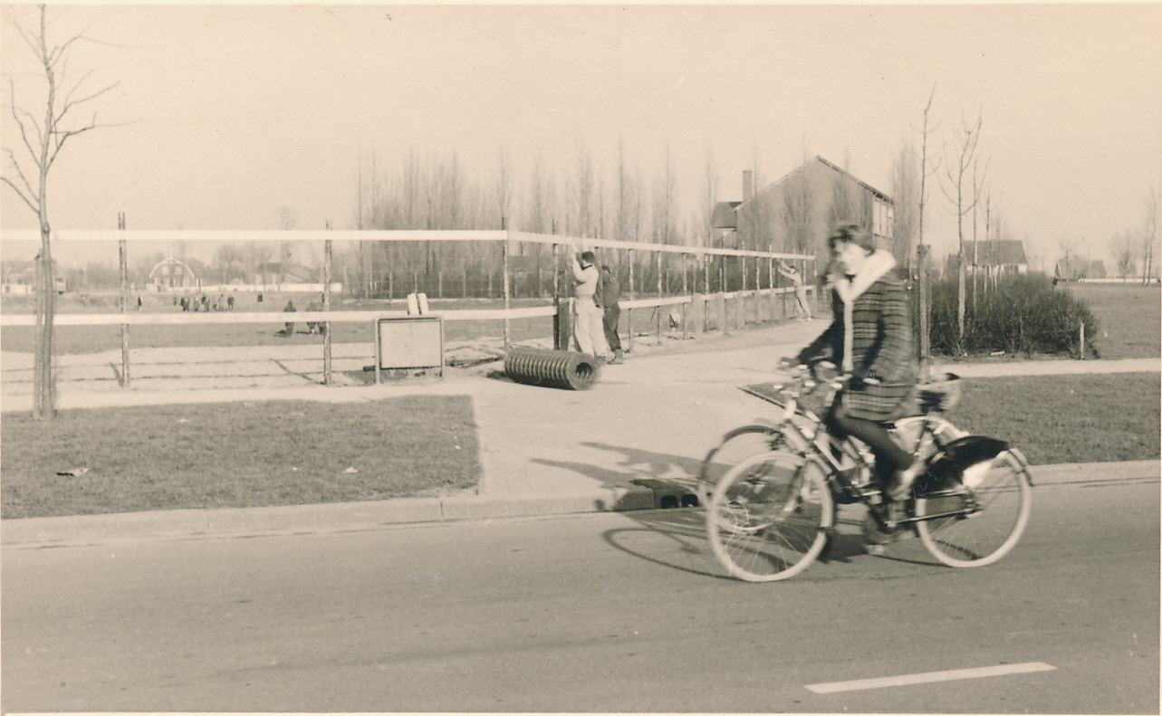 Ik herinner me een serie van 3 zoekplaatjes die gingen over de eerste paal heien voor een school of kerk in een nieuwbouwwijk in de jaren 1950. Als ik het me goed herinner is die serie niet opgelost en stond die serie op de site van Arnold. Op een van die foto's stond op de achtergrond eenzelfde of misschien wel hetzelfde huis met mansardedak als op deze foto. Misschien horen die foto's bij elkaar. In elk geval zijn ze in dezelfde periode genomen. Ik moet weer e.e.a. zoeken. Steeds heb hierbij gedacjht aan Schiedam, Vlaardingen of zelfs maassluis in verband met een dijk die zichtbaar was.