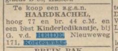 We hebben waarschijnlijk te maken met Geert v.d. Heide, geb ca. 1868 te Frederiksoord. Trouwt in Vledder met Klaasje Kok in 1893. Een dochter wordt geboren in Steenwijk, ca. 1898. De dochter trouwt in 1925 in Avereest.