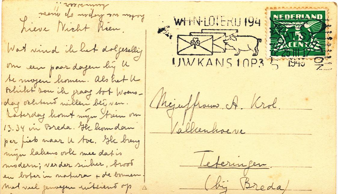 nicht Tien schrijft aan nicht A. Krol in Teteringen