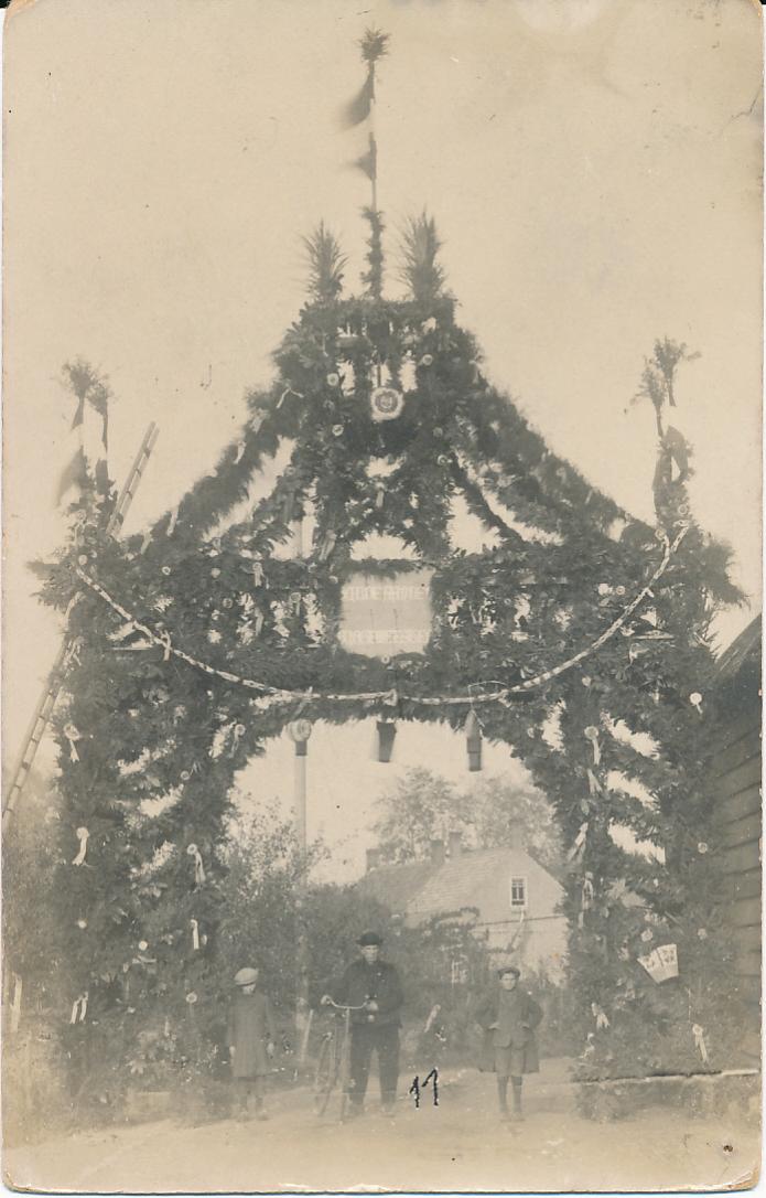 3091g feestpoort Hulde aan den burgemeester Oudelande