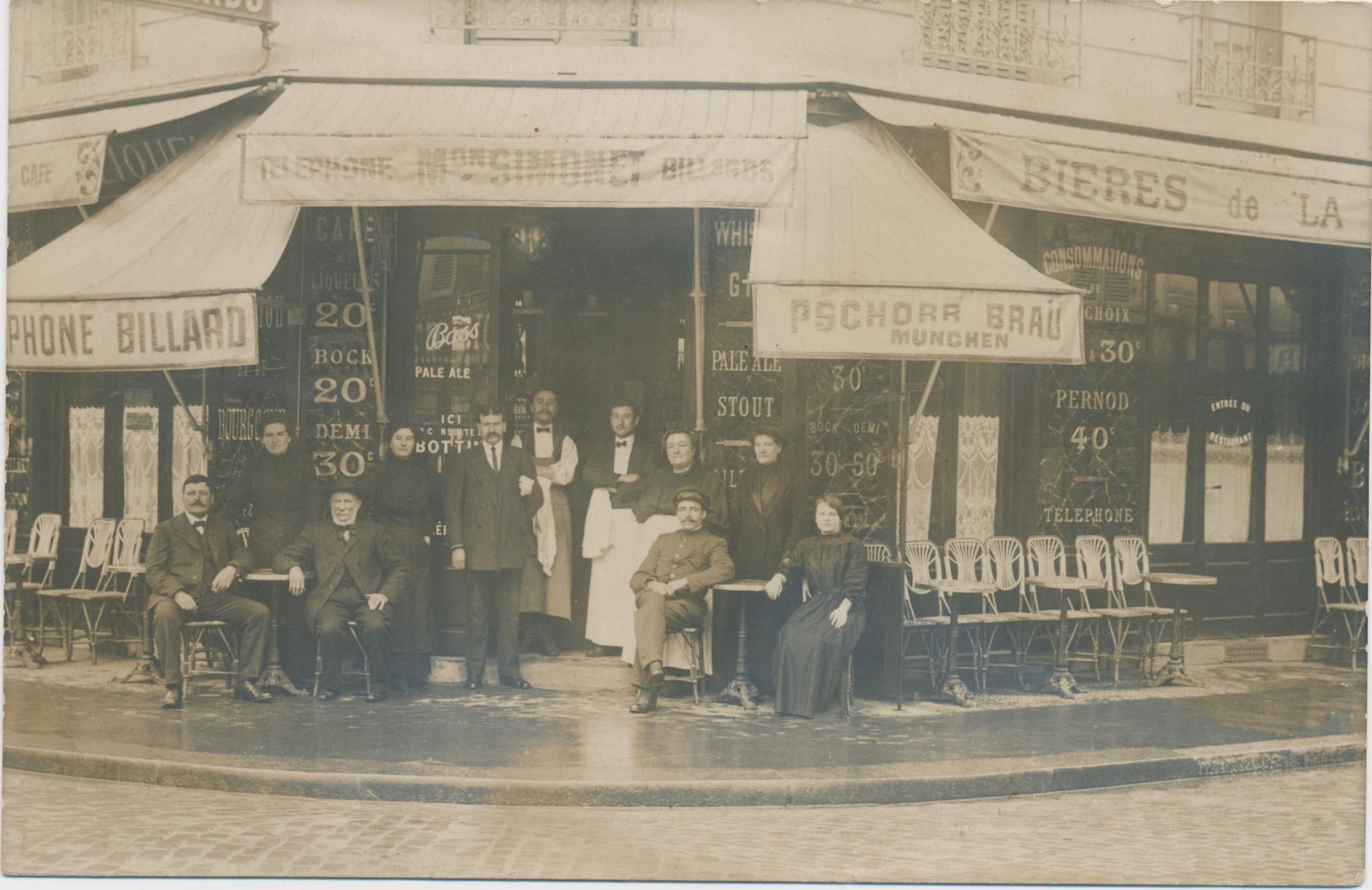 het café schenkt werkelijk van alles: bier (pale ale, stout en bock), pernod, liqueurs, whisky, gin, Bourgogne (wijn?)