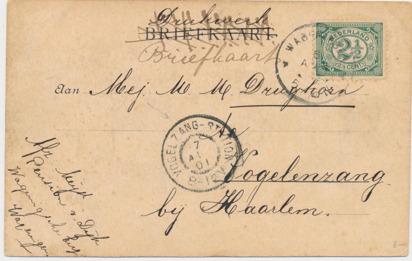 belijnde gelopen prentbriefkaart met zegel gestempeld Wageningen 1901