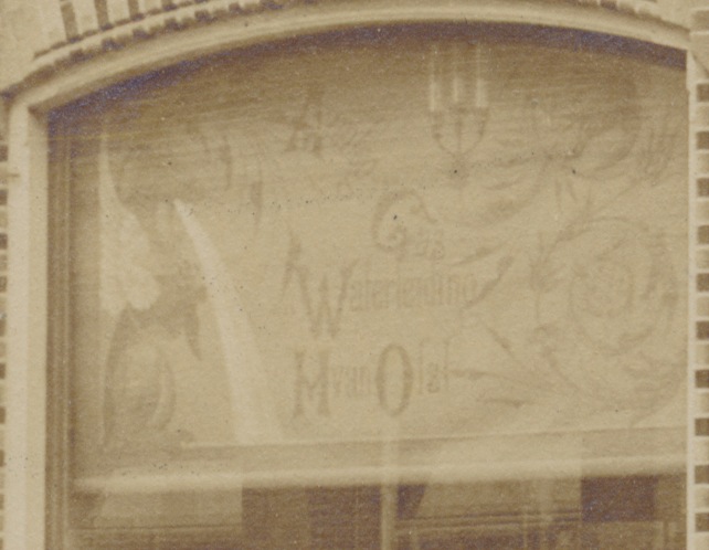 Ik zie ook het tegenoverliggende pand (theologische universiteit) gespiegeld in het ZP! Let op de ornamenten onder de ramen van het tegenoverliggende pand. Kijk maar in het bovenlicht boven H.van Olst.