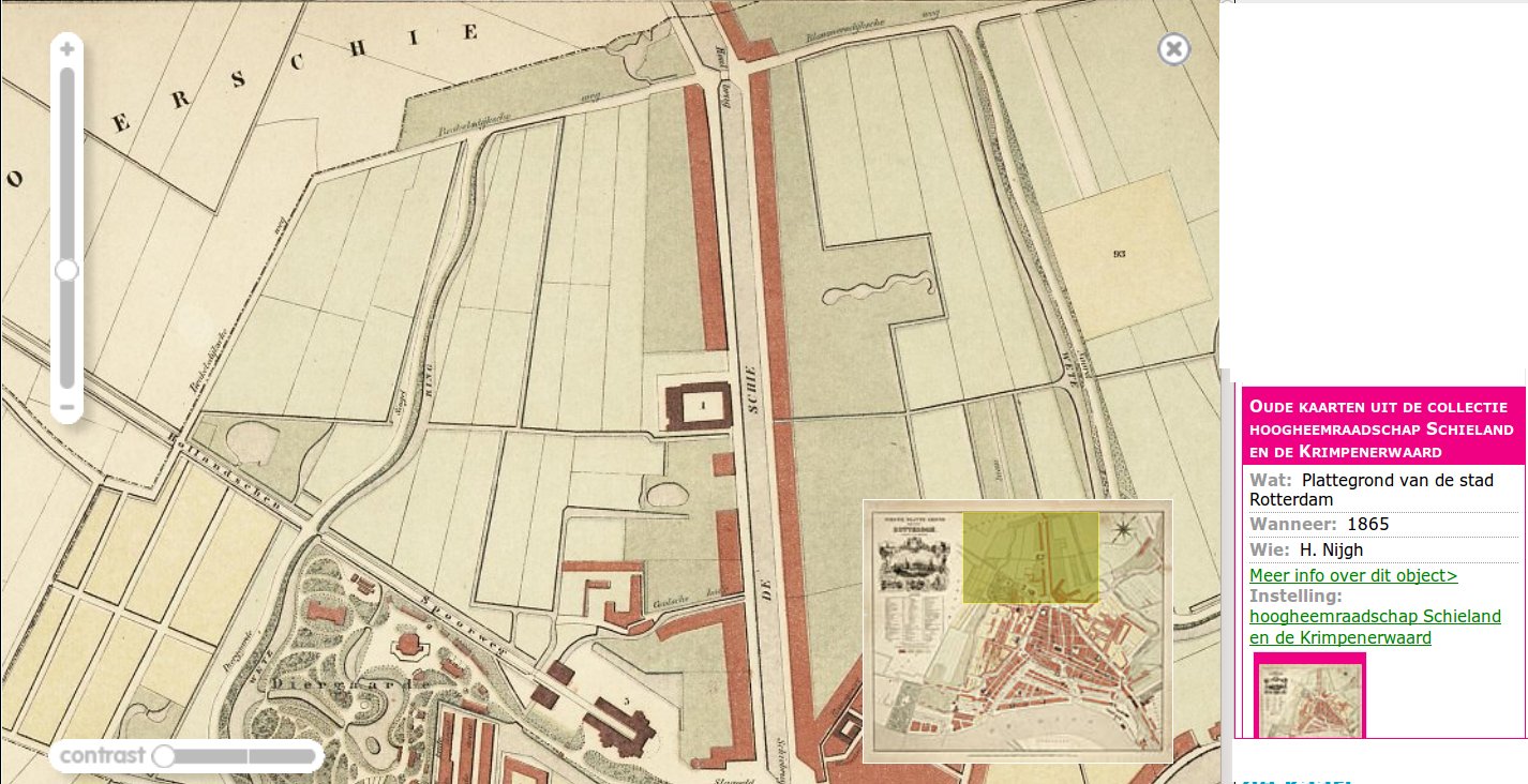 Op http://collecties.gemeentearchief.rotte ... a/748885/1 uit 1914 (midden boven) ontdekte ik het vrijstaande huisje met uitbouw en de loods erachter op het terrein van de Diergaarde aan de Diergaardesingel. Aan de noordzijde liep duidelijk zichtbaar een sloot, maar aan de zuidzijde bleek tot de Zijdewindestraat ook een sloot te lopen, dit was de lange sloot langs de Beukelsdijk. Beide sloten werden verbonden door de grondduiker met spui-afsluiter die we op het zoekplaatje zien.
