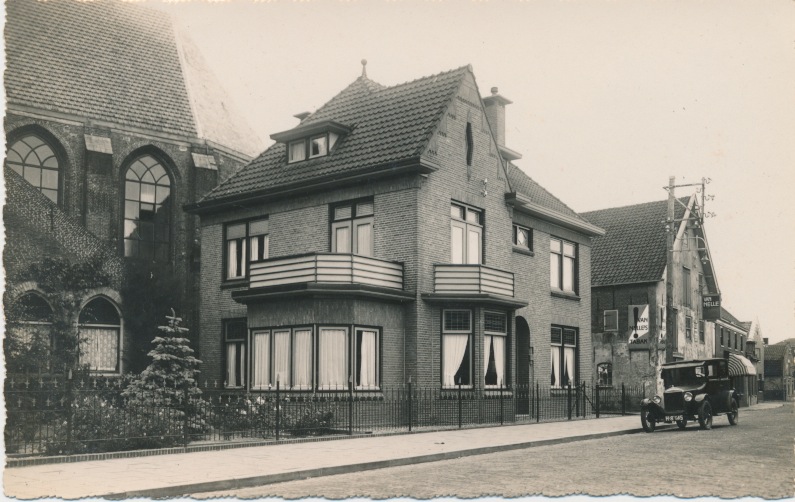 3619 strata met links kerk en rechts oud pand met Van Nelle reclame