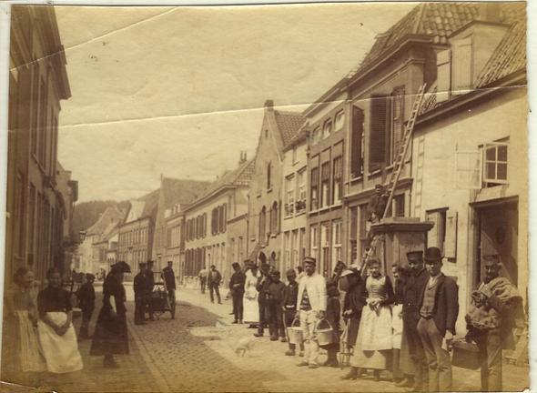 Als dit de Klosterstrasse in Elten is (de hoofdstraat), zou het huis van mijn grootvader erop kunnen staan, Klosterstrasse 11 (?). De waterpomp zit me een beetje dwars. Die stond in Elten op het marktplein, maar misschien waren er meer? Ik vind de straat ook een beetje te smal, maar dat kan een optisch effect zijn. Het is denk ik niet de Bahnhofstrasse, die veel korter is en enkele karakteristieke panden telt zoals het postkantoor en een hotel. Ook de Bergstrasse valt denk ik af.