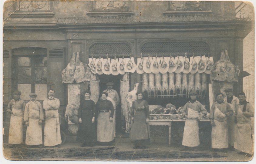 Op de hoek met de rue de Noailles. De naam is namelijk A. Frelon, en dan blijkt die kaart met adres ook op Delcampe te vinden te zijn: http://www.delcampe.net/page/item/id,234330035,var,Carte-Photo-de-VERSAILLES--Angle-27-rue-de-Noailles-et-32-rue-des-Etats-Generaux--Boucherie-Frelon,language,D.html. Hier dus: http://goo.gl/maps/xOLmC. Nog steeds een slagerij.