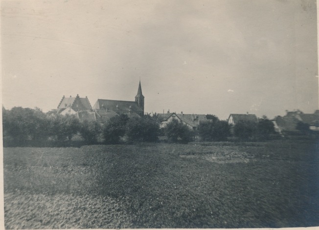 Gezicht op Lobith, met de O.L.V. Onbevlekt Ontvangen-kerk en pastorie