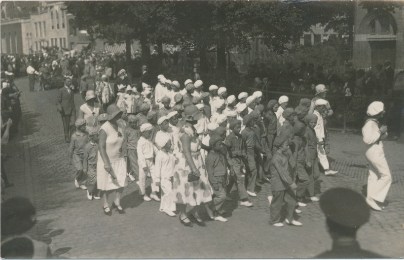 3767g optocht van kindertjes die een vlag uitbeelden JB - retour