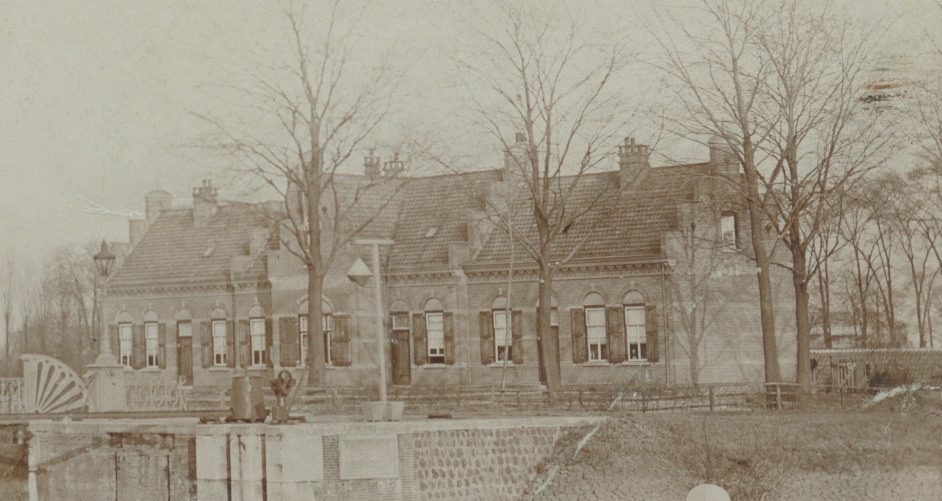 3801g sluis met woningen op achtergrond ca. 1900 JBI