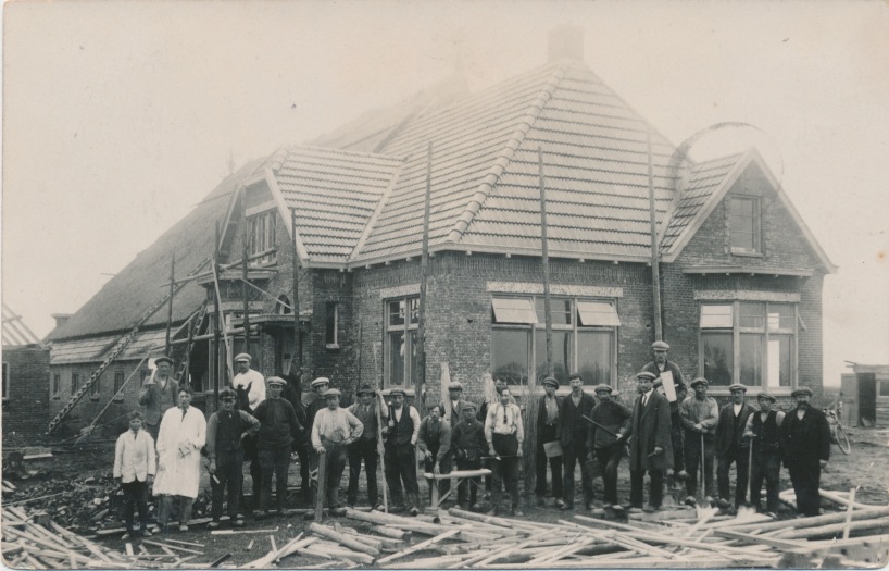 3830g huis in aanbouw, voorzijde pannen achterzijde rietgedekt JBI - retour