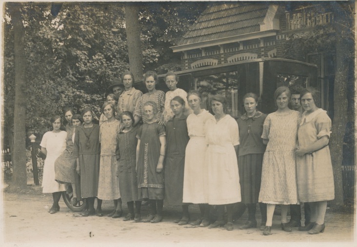 - retour3835g 17 dames vóór busje vóór huis JBI