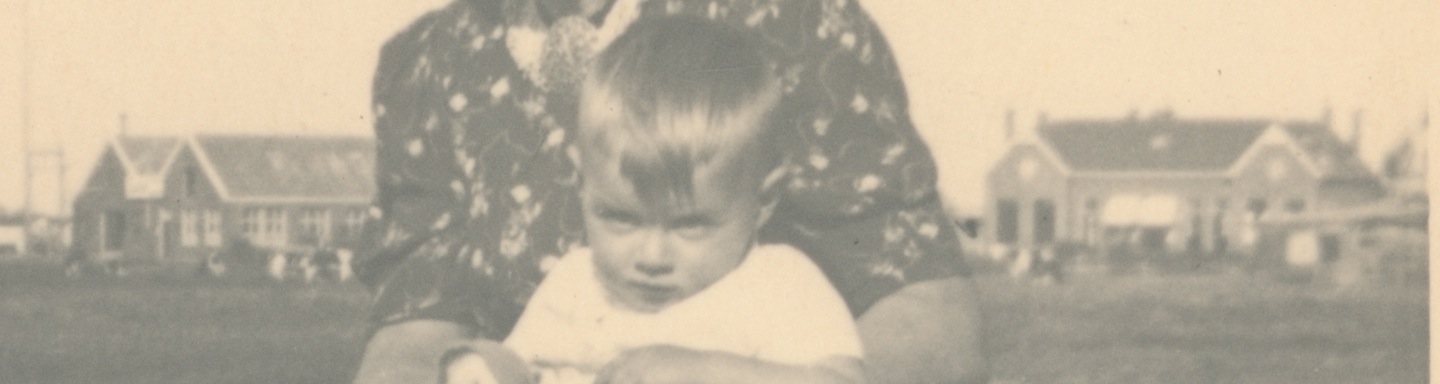 3990g vrouw en kind op muurtje langs straat JB - retour