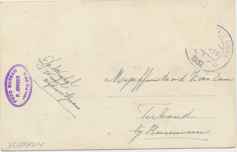 belijnde gelopen fotokaart, gestempeld Anna Paulowna 1932