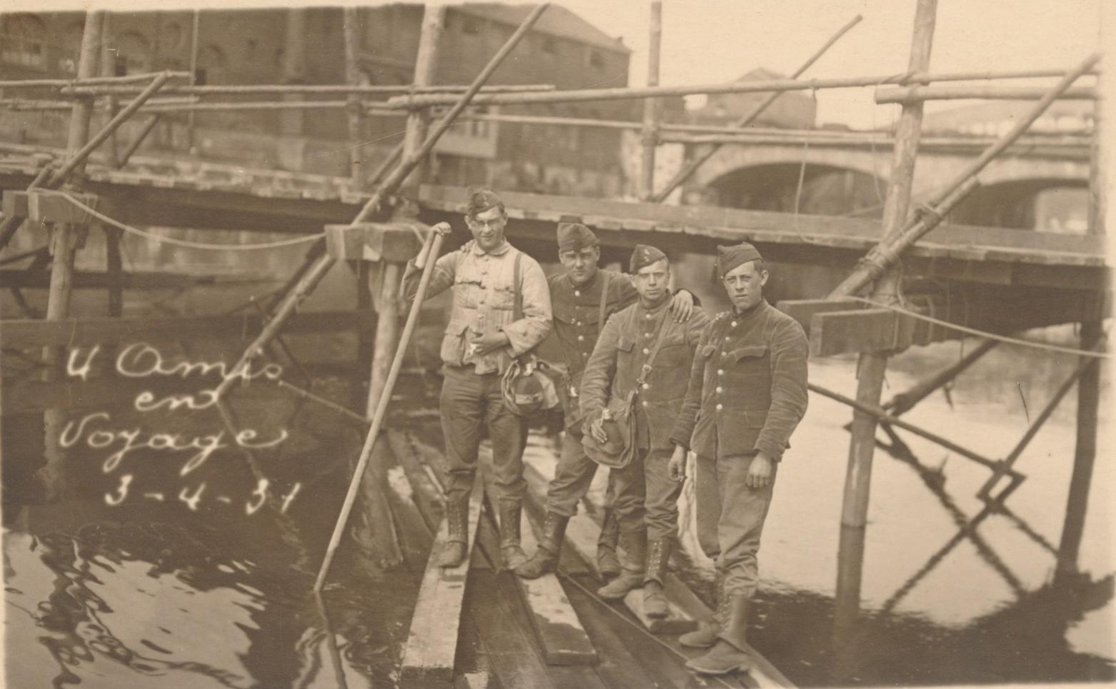 4 in militaire kledij gestoken mannen met beenkappen (mijn opa, die dingen ook droeg, noemde ze volgens mij: poeties)