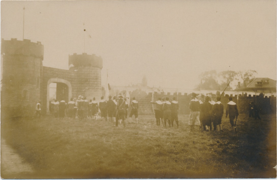 Ik kan me zo'n poort herinneren, iets meer van voren genomen. Had die eerdere niet te maken met een bakkerswedstrijd (bij gelegenheid van het feest)? Maar was dat Hoogeveen? Op Delpher staan foto's van twee feestpoorten, maar deze staat er niet tussen. Het lijkt me ook nogal een 'middeleeuws' exemplaar en is dat logisch als het stadje pas in 1625 is gesticht?