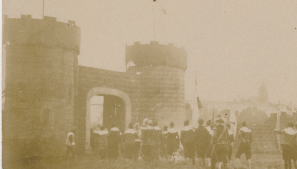 4222g feest met nep kasteel en verkleed volk JB - retour