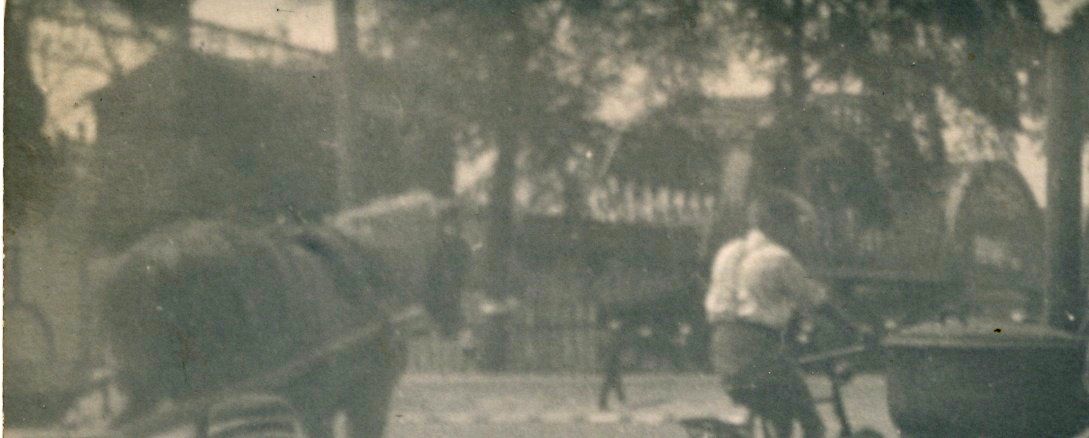 Nu ik de kaart nog eens extra goed vergelijk met jullie bewijsopnames, valt me iets op dat ik bij het plaatsen over het hoofd zag. Als ik het goed zie, zie ik achter de man met stropdas een wagen met aan de achterkant een ketel. Dat doet me denken aan mijn jeugdjaren, toen ik eens mannen met kannetjes vloeibare teer de naden tussen de kinderhoofdjes zag vullen. De teer werd verwarmd en vloeibaar gemaakt in een grote ketel. Zien we hier ook zo'n ketel? Het zou wel passen bij de mannen die met borstels de keitjes schoon borstellen om er de straat weer mee te maken. Is dat een goede gedachte van me?