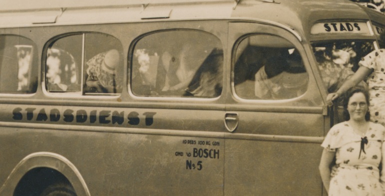Behalve stadsdiensten, deed v.d. Bosch ook aan "uitjes", b.v prinsjesdag, bollevelden etc. Het ligt voor de hand dat deze foto tijdens een uitstapje gemaakt is: