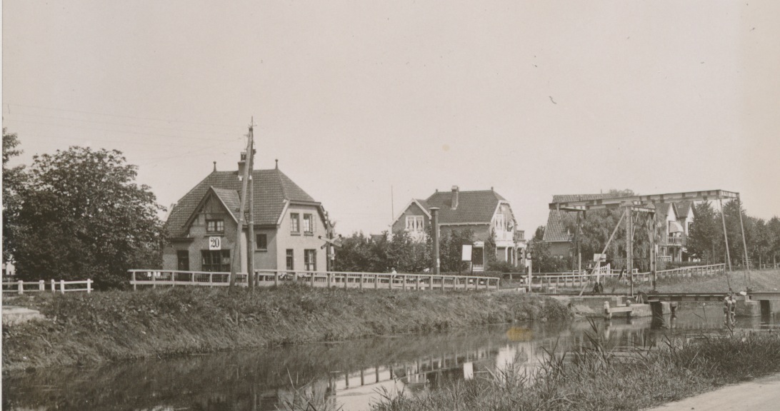 4508 kanaal in Groningen of Friesland met spoorbrug en overwegwachterswoning 20
