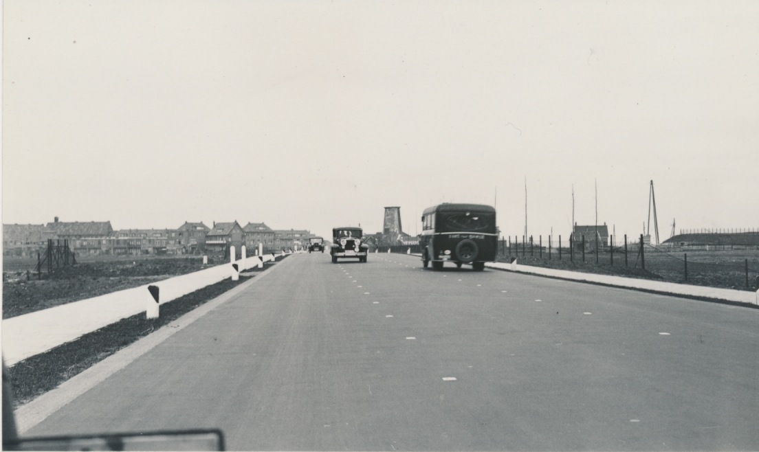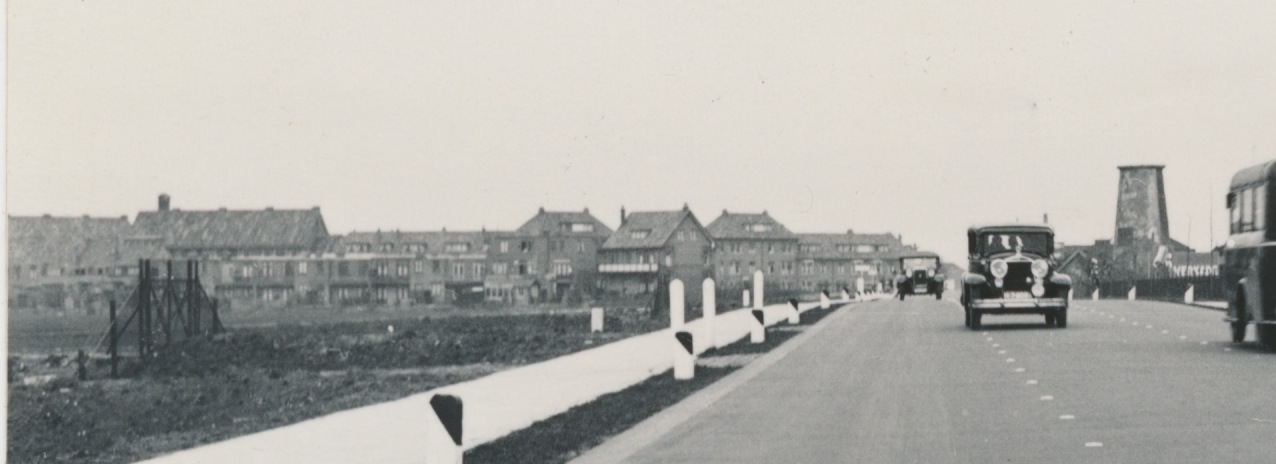 Delft, Rijksweg 13, Pauwmolen en huizen o.a. aan de Nassaulaan