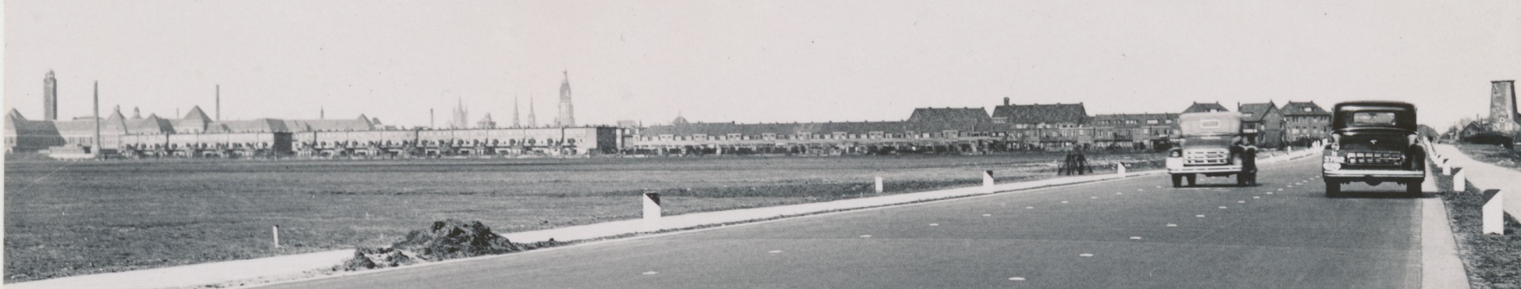 driebaansweg met weer dezelfde kerktorens links en rechts een molenstomp?
