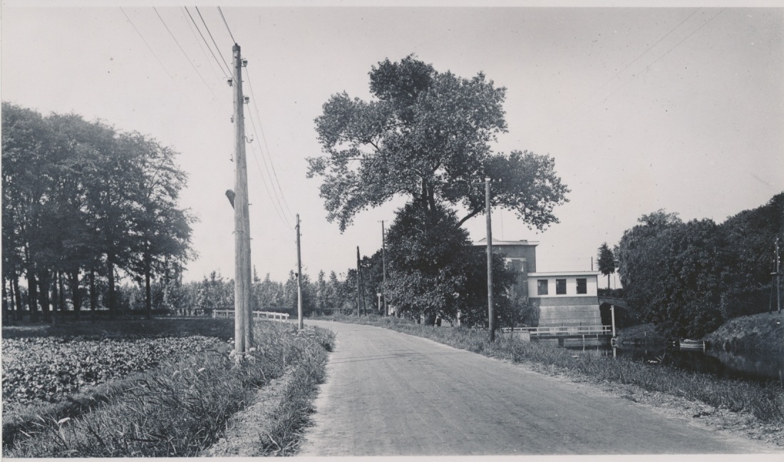 4549 onlangs geasfalteerde weg met rechts wsch. een gemaal