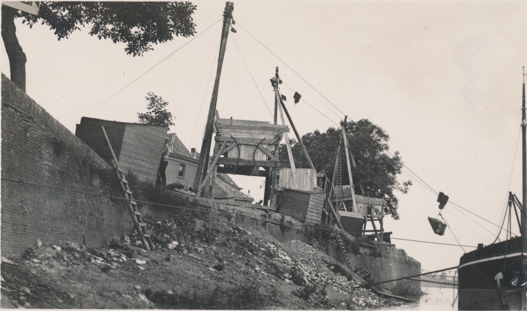 4562 hoge gemetselde wallenkant met boogbrug in de verte