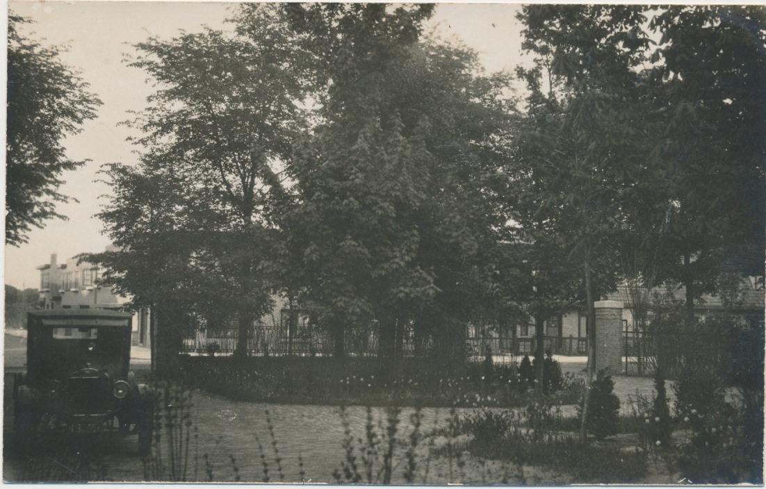 naast de auto en rechts een gemetselde pilaar