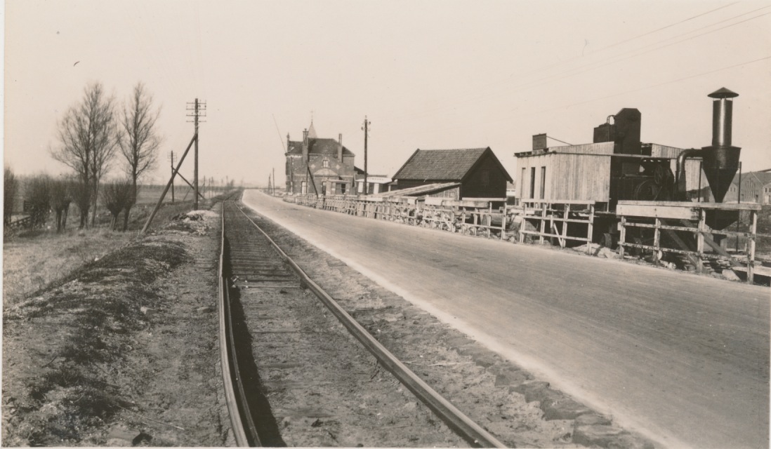 Barendrecht, Achterzeedijk met station R.T.M. en VELO-wasmachinefabriek