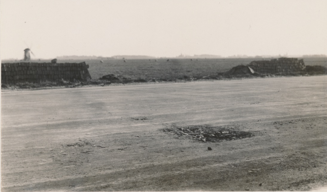 4640 slecht wegdek met molen in de verte + 2 vage kerken