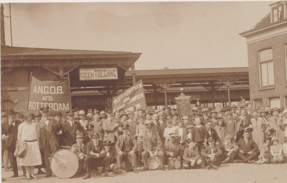 4643g Alg.Ned.Geh.Onth.Bond uit Rotterdam met muzikanten bij station HAV