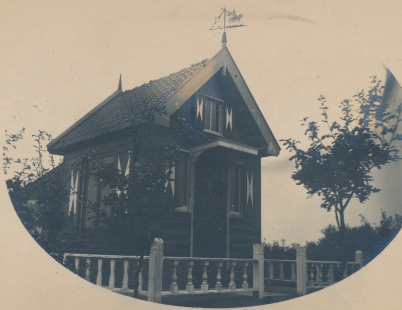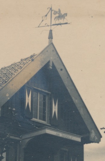 4680 houten huisje, pannengedekt "De Heraut" met dito windwijzer