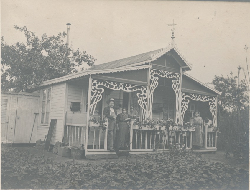 4763-1 houten vakantiehuisje met windwijzer in Jugendstil