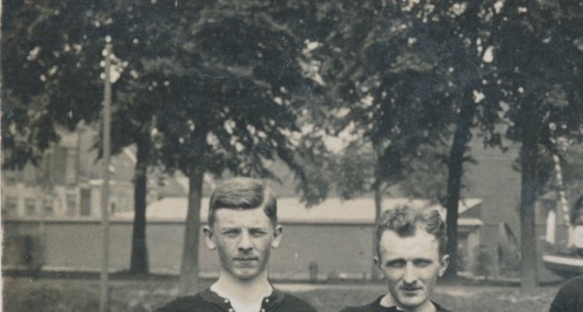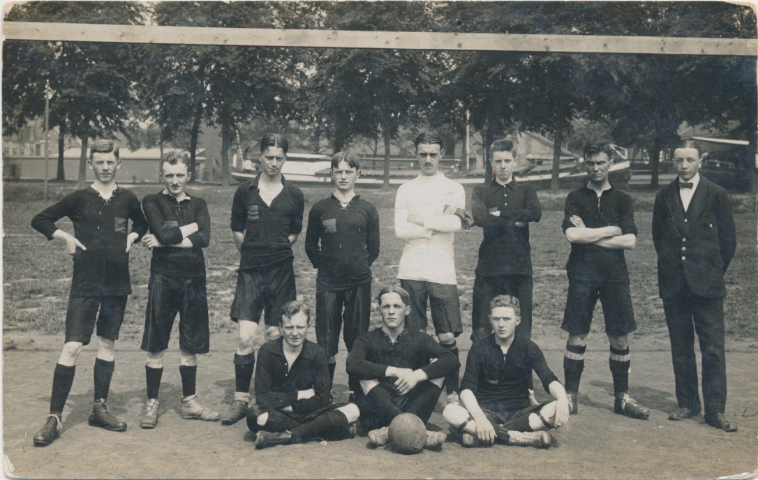 uit de tijd dat voetbal nog een sport voor "hoge heren" was, waarvan een aantal keurig met de scheiding in het midden