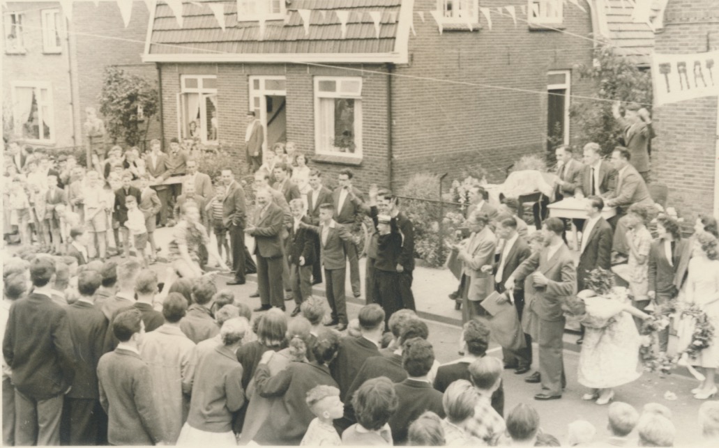 4775g fietser in straat tussen toeschouwers op weg naar startdoek JBI - ret.