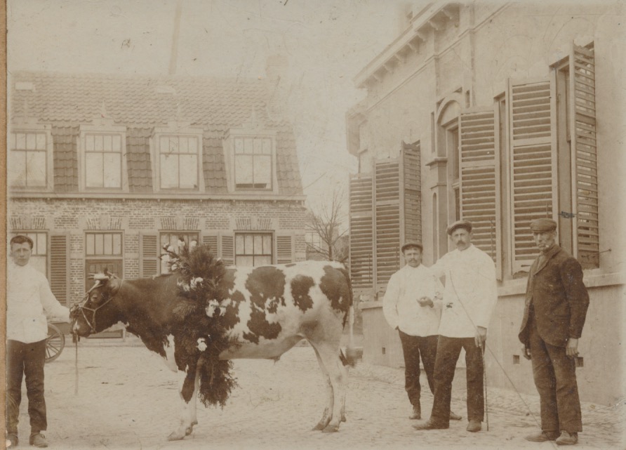 Peter, je zit helemaal goed want als ik het goed zie, zie ik zelfs nog een wiek van de molen op de achtergrond. Er is, wat we hier zien, wel rigoureus gesloopt, zeg. Als ik het niet mis heb, kijkt de stier naar de slagerswinkel van 4778. Je hebt me weer fantastisch geholpen, waarvoor ik je graag hartelijk bedank.